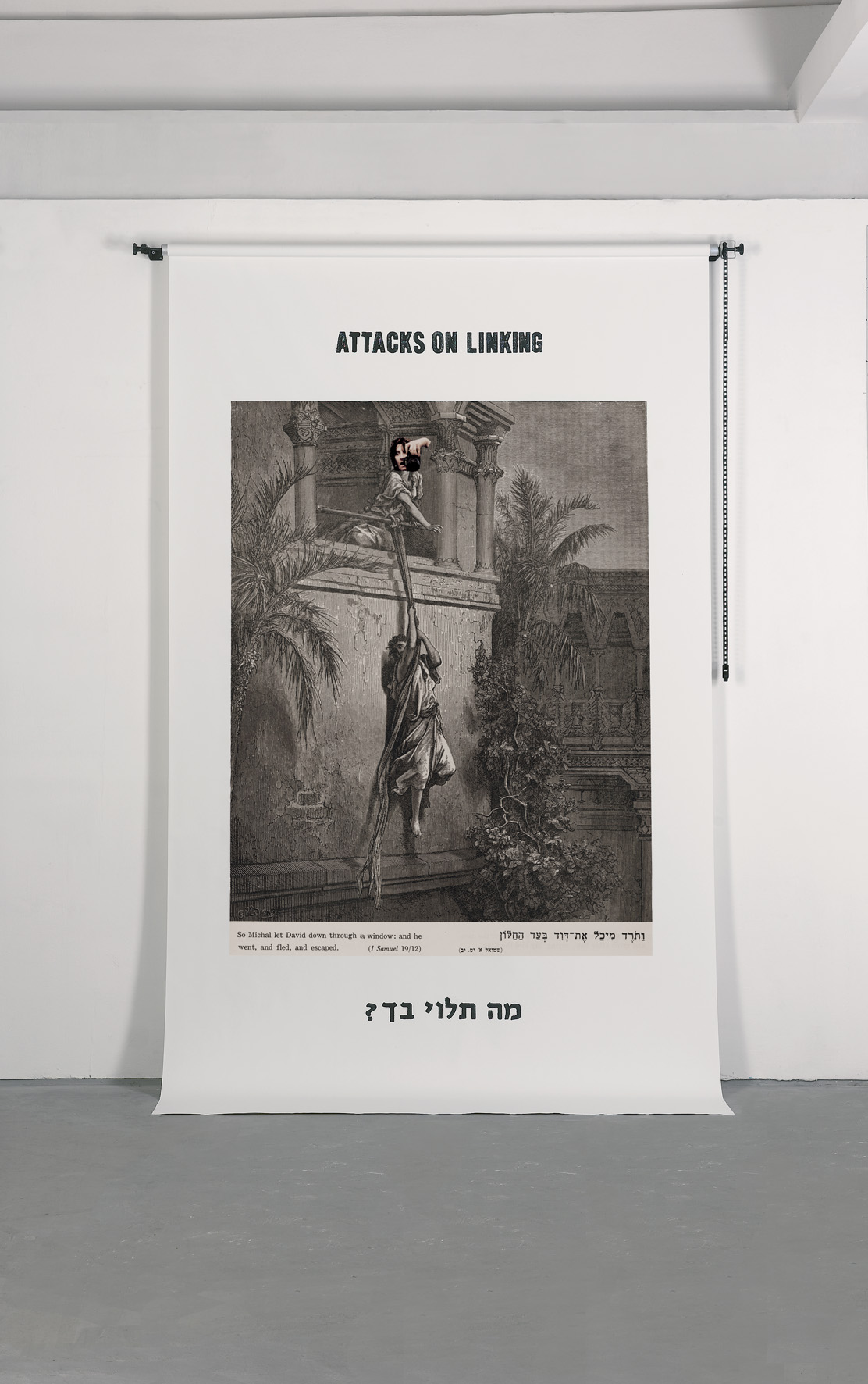 טקסט תיאור תמונה כאן - שורה 1 אחת העבודות המעניינות ביותר בתערוכה בהקשר זה אינה מכילה התכתבות עם עבודתו של דורה כלל וכלל. שילובה בתערוכה מרחיב את הדיון בהקשר שבין היצירה המקומית והמקרא, וגם מאיר את מכלול היצירה של לביא באור חדש. מדובר בליטוגרפיה שבה מצטט האמן בכתב ידו (בשונה מציטוט חומרי יהדות, הנפוצים אצלו בצורת הדבקות קולאז') פסוק משיר השירים.